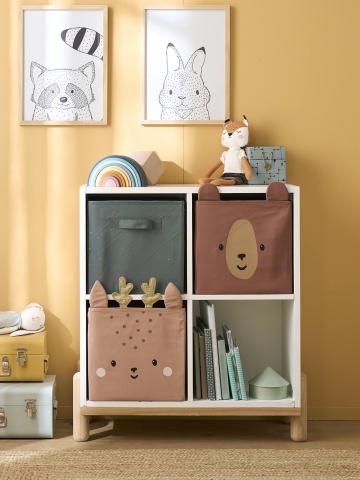 3 adorables petits bacs de rangement en tissu qui trouveront leur place au sol ou dans un meuble à cases ! Sur le thème de la forêt, ils permettent de raconter des histoires tout en décorant la chambre ou la salle de jeux !