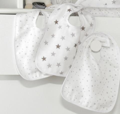Lot de 3 bavoirs 1er âge Rêves d'étoiles de la marque Trois Kilos Sept. Indispensables pour les repas de bébé.