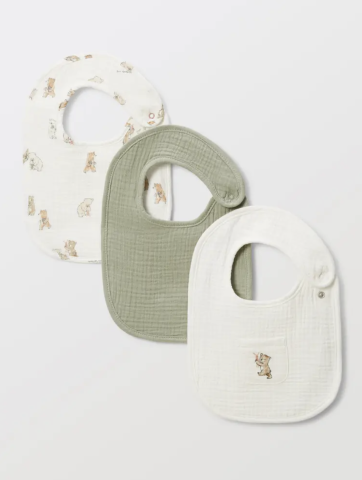 Lot de 3 bavoirs éponge imprimés en coton BIO ECRU