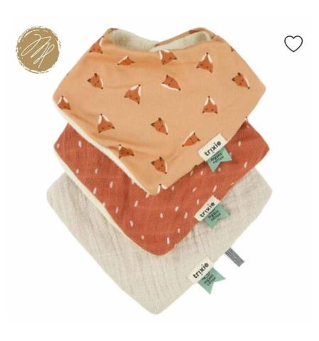 Craquez pour le lot de 3 bavoirs bandana Fierce Fox de la marque Trixie. Idéal pour protéger bébé lors des repas ou lorsqu'il bave. Plusieurs coloris disponibles. Paiement sécurisé.....