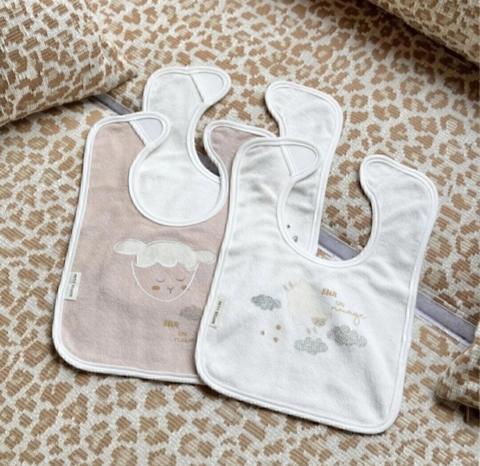 Un trio pratique pour les repas du quotidien. Faciles à attacher et à laver, ces bavoirs protègent les tenues de bébé tout en ajoutant une touche de style