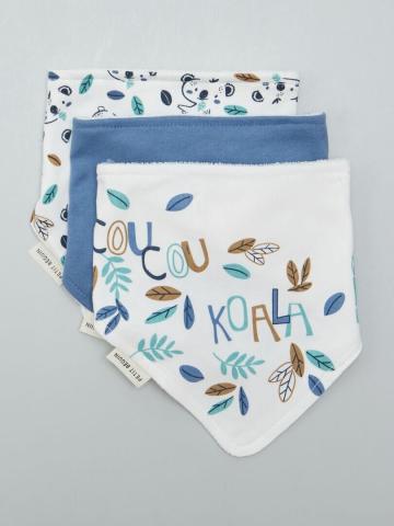 Ajoutez une dose de mignonnerie à l'heure des repas avec notre lot de 3 bavoirs Koala de la collection 'Petit Béguin'. - Bavoirs 'Petit Béguin' - Lot de 3 - 100% coton - Partie coton - Partie éponge - Ouverture pressionnée - Imprimé koala