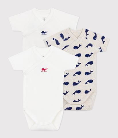 Lot de 3 bodies croisés manches courtes en coton imprimé bébé dès 25.00 EUR chez Petit Bateau.