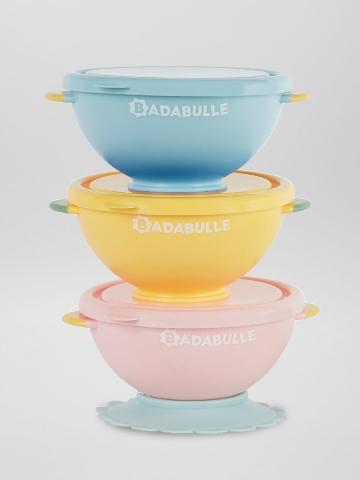Lot de 3 bols de 330 ml avec couvercle hermétique pratique pour emporter les repas de bébé. Ventouse anti-dérapante...