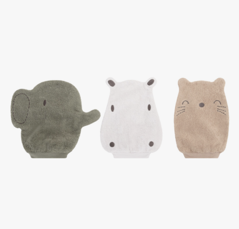 Lot de 3 gants de toilettes Animaux de la savane | Prémaman