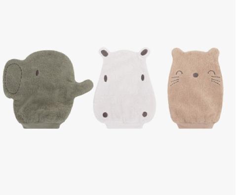 Lot de 3 gants de toilettes Animaux de la savane | Prémaman