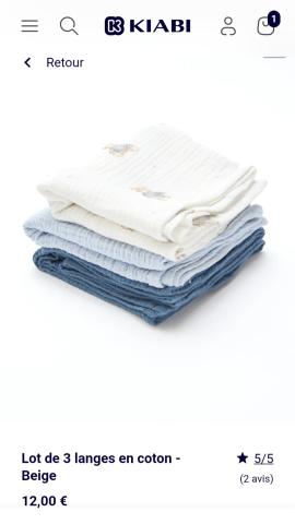 Ce produit est extrait d'une liste de naissance déposée sur Kadolog. Kadolog permet de créer des listes de naissance en toute liberté. Il est possible d'ajouter toutes vos envies cadeaux et de recevoir les dons directement sur votre compte. Avec les dons reçus, vous êtes alors libre d'aller acheter vos produits (comme ce 'Lot de 3 langes ') où et quand vous le souhaitez.