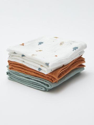 Pratique et doux pour la peau de bébé, il offre confort et polyvalence pour chaque moment de la journée. - Lot de 3 langes en coton - 2 unis - 1 imprimé - Dimensions : 60x60 cm