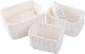 Lot de 3 paniers de rangement tressés - Boîtes de rangement pour accessoires de maquillage, salle de bain - Organiseur de table à langer - Petit panier de rangement de salle de bain (blanc) : Amazon.com.be: Cuisine et maison