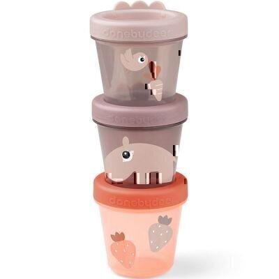 Caractéristiques techniques : - Lot de 3 boîtes de conservation.- Idéales pour le goûter à la crèche ou pour garder les purées faites maison au congélateur.- Boîtes translucides empilables et faciles à ranger.- Etanches et hermétiques grâce au couvercle à vis.- Le couvercle est décoré d'écailles de Croco et sur les boîtes on retrouve les Deer friends avec leur en- cas préféré.- Boîtes de conservation dans des tons de bleu et décorées de différents motifs.- Une boîte avec Birdee qui s'envole avec une carotte.- Une autre boîte avec Ozzo à la recherche d'un petit encas.- Une boîte décorée de fraises.- à8 x H 8 cm.- 150 ml.