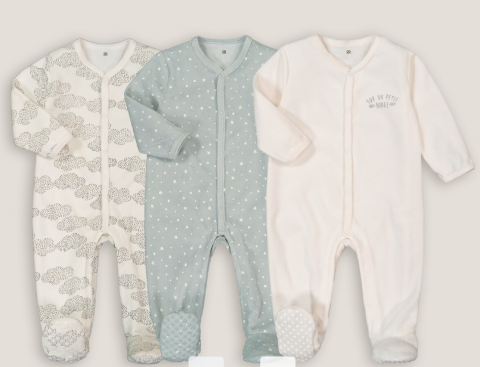 • Lot de 3 pyjamas : 2 imprimés et 1 uni avec message poitrine