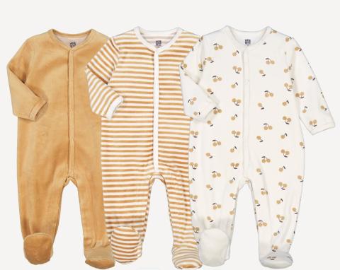 Motif imprimé cerises sur 1 pyjama + 1 pyjama rayé + 1 pyjama uni avec motif cerises imprimé poitrine