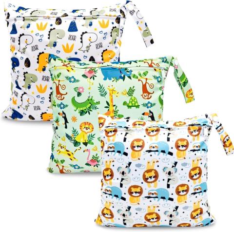 Lot de 3 sacs de rangement polyvalents (pour couches, lingettes, vêtements, etc.). Imperméable, fermeture éclair et poignée de transport.