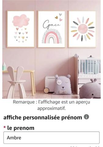 3 posters personnalisés "Ambre" dans les tons rose