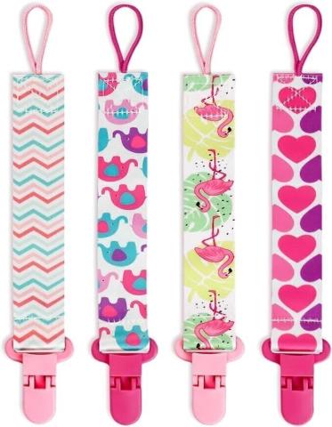 Le clip de sucette est fait d'une boucle en plastique de haute qualité et d'une lanière en polyester, le bord est lisse et ne blessera pas la peau délicate de bébé