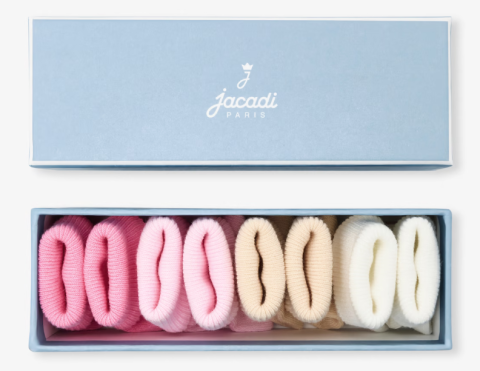 Déclinées dans des coloris coordonnés à la collection de vêtements, les chaussettes bébé se présentent par lot de quatre dans une petite boîte. Pratiques et faciles à associer, portées revers repliés ou façon chaussettes hautes, elles réchaufferont les looks et les pieds de bébé.- Chaussettes côtelées bébé- Tige à revers- Faciles à enfiler- Modèle pouvant se porter en chaussettes hautes- Jolie idée de cadeau de naissance à offrir ou à s’offrir