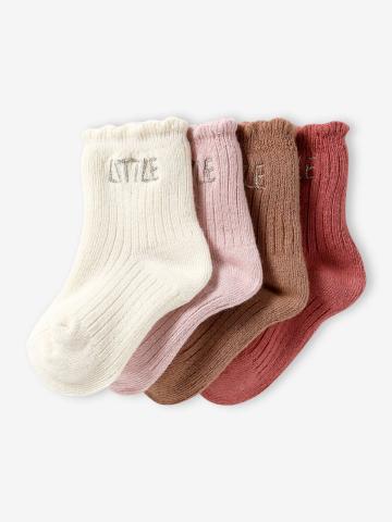 Lot de 4 paires de chaussettes "little" bébé vieux rose - Des couleurs douces, une maille côtelée aux finitions festonnées, une broderie "Little"* sur la cheville...