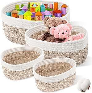Lot de 4 Panier Tissé en Corde Coton, Empilables Rangement pour Chambre d'Enfant, Bain, Salle de Bain : Amazon.com.be: Bébé et Puériculture