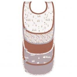 Le lot de 5 bavoirs en éponge imperméable de Lässig convient pour les enfants de 3 à 18 mois.