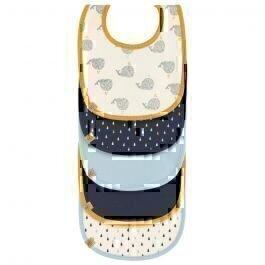 Le lot de 5 bavoirs en éponge imperméable de Lässig convient pour les enfants de 3 à 18 mois.