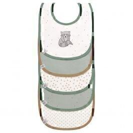 Le lot de 5 bavoirs en éponge imperméable de Lässig convient pour les enfants de 3 à 18 mois.