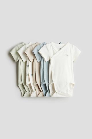 Bodies à manches courtes en jersey de coton doux. Modèle à fermeture croisée avec boutons-pression sur les côtés et à l'entrejambe.