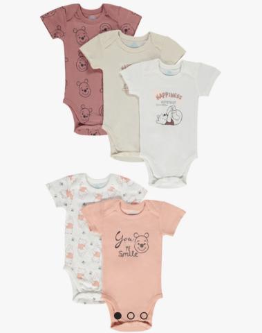Lot de 5 bodies manches courtes en coton Winnie l'ourson Disney pour bébé