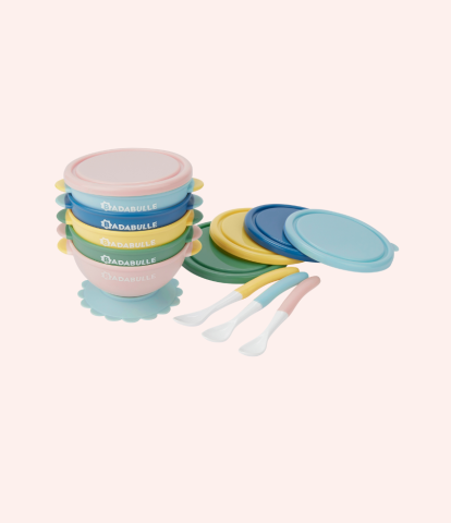 Lot de 5 bols antidérapants Badabulle®. Le kit repas complet, coloré et ingénieux ! 5 bols de 330ml avec 5 couvercles hermétiques et 1 ventouse anti-dérapante. 3 cuillères avec manche antidérapant! Embout cuillère adapté aux petites bouches. Passent au micro-ondes et au congélateur. Tous les produits Badabulle en ligne. Livraison offerte dès 45€ d'achat.