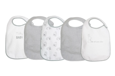 Lot de 5 bavoirs éponge doublés en éponge 100% coton spécial diversification alimentaire.