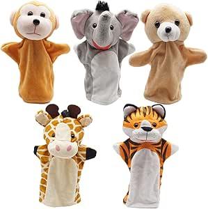 CreepyParty Lot de 5 marionnettes à main, marionnettes à tête d'animal sauvage pour enfants et bébés, animaux de zoo en peluche douce : Amazon.com.be: Jouets