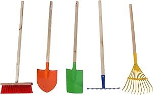 Lot de 5 outils de jardin pour enfants - Multicolore - Pelle, balai, bêche, râteau - Style bois : Amazon.com.be: Jouets