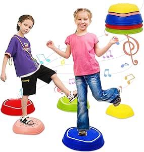 Lot de 5 pierres lumineuses musicales pour enfants - Équilibre sensoriel - Antidérapantes - Pour l'entraînement sensoriel et les jeux en intérieur et en extérieur : Amazon.com.be: Jouets