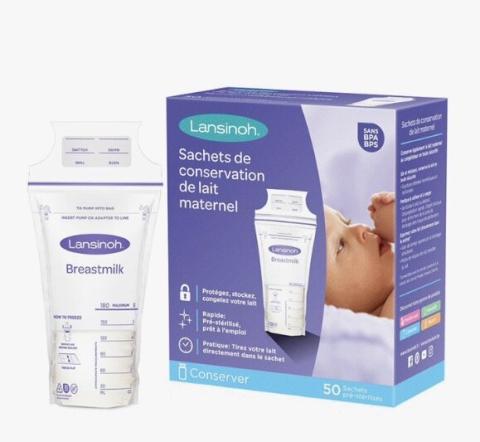 Lot de 50 sachets de conservation du lait maternel pré-stérilisés 180 ml