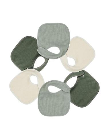 Optez pour ce lot de 6 bavoirs naissance Nid d'abeille de chez Trois Kilos Sept. Un pour chaque jour de la semaine. Plusieurs modèles disponibles......