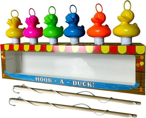 Lot de 6 canards multicolores en plastique avec crochets et poids, avec 2 cannes à pêche avec crochets, jouets de bain, jouets de piscine, pêche au canard, garçons et filles