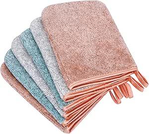 PHOGARY Lot de 6 gants de toilette en microfibre super absorbants et doux, 15,2 x 20,3 cm, gants de bain et spa en polaire corail, réutilisables, 3 couleurs.
