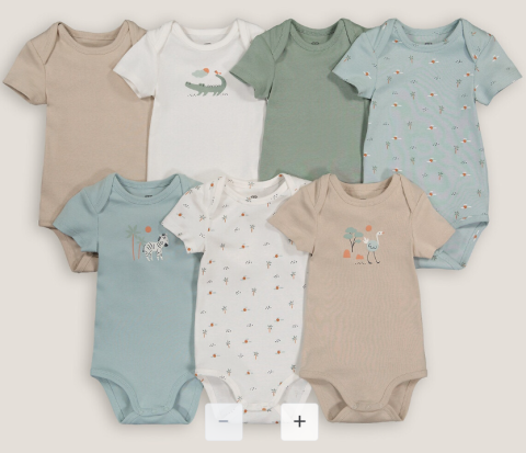 Ce produit est extrait d'une liste de naissance déposée sur Kadolog. Kadolog permet de créer des listes de naissance en toute liberté. Il est possible d'ajouter toutes vos envies cadeaux et de recevoir les dons directement sur votre compte. Avec les dons reçus, vous êtes alors libre d'aller acheter vos produits (comme ce 'Lot de 7 bodies ') où et quand vous le souhaitez.
