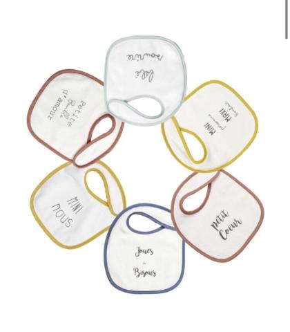 Lot de 6 bavoirs étanches « Trois kilos sept » avec messages trop mignons ☺️