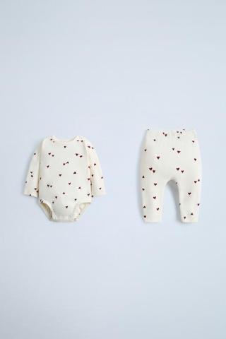 Lot de deux pièces. Body à col rond et manches longues. Fermeture par boutons-pression à l'épaule et à l'entrejambe. Legging avec taille élastique.