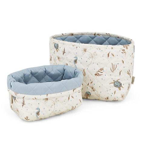 Rangements pratiques pour organiser la table à langer, la chambre de bébé ou la salle de bain. Les paniers sont fabriqués en coton biologique certifié OCS et sont joliment matelassés.