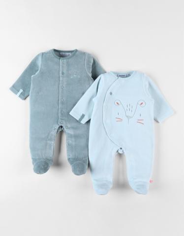 Set de 2 pyjamas 1 pièce en velours, bleu ciel/sauge | Noukie's