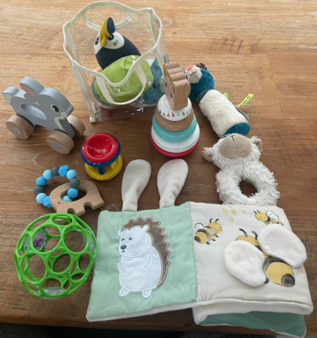 Ce produit est extrait d'une liste de naissance déposée sur Kadolog. Kadolog permet de créer des listes de naissance en toute liberté. Il est possible d'ajouter toutes vos envies cadeaux et de recevoir les dons directement sur votre compte. Avec les dons reçus, vous êtes alors libre d'aller acheter vos produits (comme ce 'Lot de jouets premier âge (en seconde main) ') où et quand vous le souhaitez.