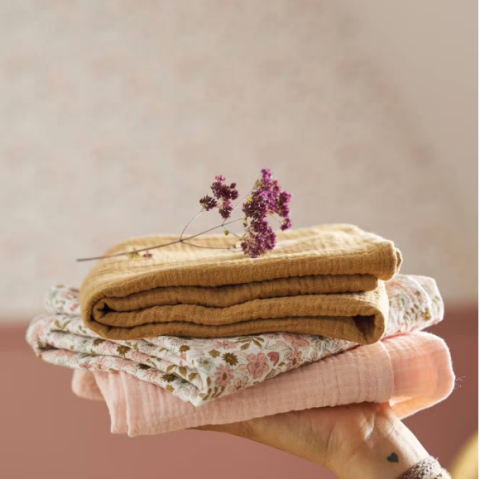 - 1 lange petits motifs fleurs - 1 lange uni avec un motif fleur - 1 lange uni