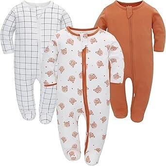 LAT LEE AND TOWN Lot de 3 grenouillères pour nouveau-né garçon fille avec pieds pyjama une pièce à manches longues pour nourrisson printemps automne, Orange, 3 mois : Amazon.com.be: Mode