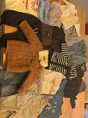 3 pyjamas, 4 chemises, 5 pulls/gilets, 4 pantalons, 1 salopette et 1 belle veste en velours côtelé comme papa 🥰