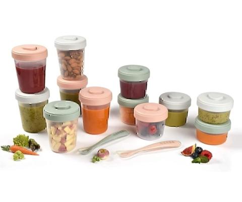 BÉABA, Lot de 12 Portions Conservation et 2 Cuillères Silicone, Clip, Pots empilables et emboîtables, 100% hermétique, Graduation, Congélation, Lait Maternel (2x90 ml & 4x150 ml & 6x250ml), Eucalyptus : Amazon.com.be: Bébé et Puériculture
