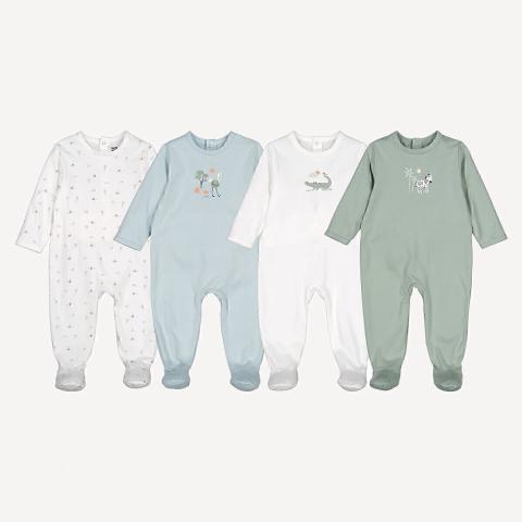 4 petits pyjamas en coton pour les premiers jours de notre petit Colin, achetés en deuxième main