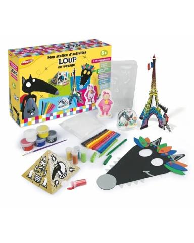 LOUP EN VOYAGE COFFRET MULTI ACTIVITES 5 bricolages à réaliser : boule à neige, masque, figurine en plâtre, tour Eiffel velours et pyramide en sable. Plâtre...