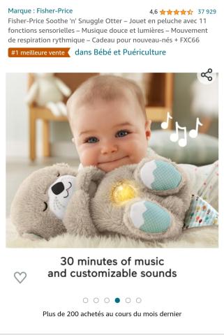 Loutre sensorielle, musique,lumière et mouvement respiratoire pour apaiser bébé.