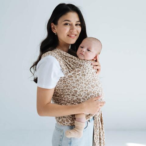 L'écharpe de portage extensible Masala de Love & Carry a l'avantage d'être tissé avec du modal : matière légère et aérée, parfaite pour l'été